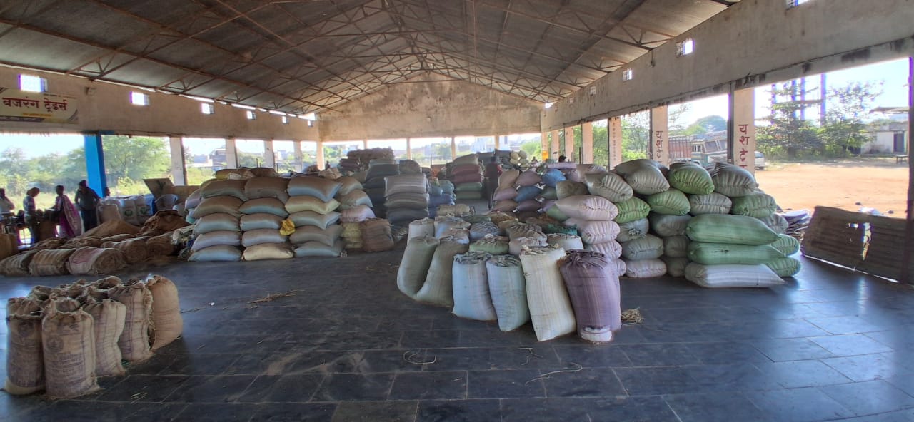 धान्याच्या लिलावा करीता टिनशेड उभारल्या गेले आहे.